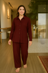 Elevate your everyday style with this elegant solid co-ord set for women, crafted from soft textured crepe fabric. Designed for both comfort and sophistication, the button-down shirt features classic cuffed sleeves for a polished look. Paired with slightly loose-fit trousers, this set offers effortless movement and all-day ease—perfect for casual outings, workdays, or relaxed weekends.