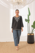 Elevate your everyday style with this elegant embroidered top, crafted from premium cambric cotton for all-day comfort and breathability. The neckline and hem feature delicate embroidery that adds a refined touch, while the lace detailing on the sleeves offers subtle charm. Whether you're dressing it up with trousers or keeping it casual with jeans, this versatile piece transitions effortlessly from day to evening.